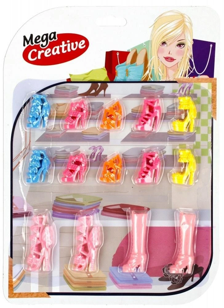 Zalety produktu: rozwija kreatywność dziecka, pobudza wyobraźnię, w zestawie różne rodzaje butów dla lalek, idealne na wielkie wyjście oraz na co dzień. Każda Lalka, na wzór prawdziwego człowieka, musi posiadać buty. Zestaw MEGA CREATIVE zadowoli nawet najbardziej wymagające Lalki i dzieci! Zawartość zestawu: 7 par butów. Całość wykonana z plastiku. Wymiary/waga/baterie: wymiary opakowania (dł. x wys. x gł.) [cm]: 18,5x25,5x2, wymiary DISPLAYA (dł. x wys. x gł.) [cm]: 19x25x16, waga produktu w opakowaniu [kg]: 0,06 kg, waga DISPLAYA [kg]: 0,84 kg, nie wymaga zasilania bateriami. Zestaw przeznaczony dla dzieci w wieku: 3+. Pakowany na blistrze z zawieszką.