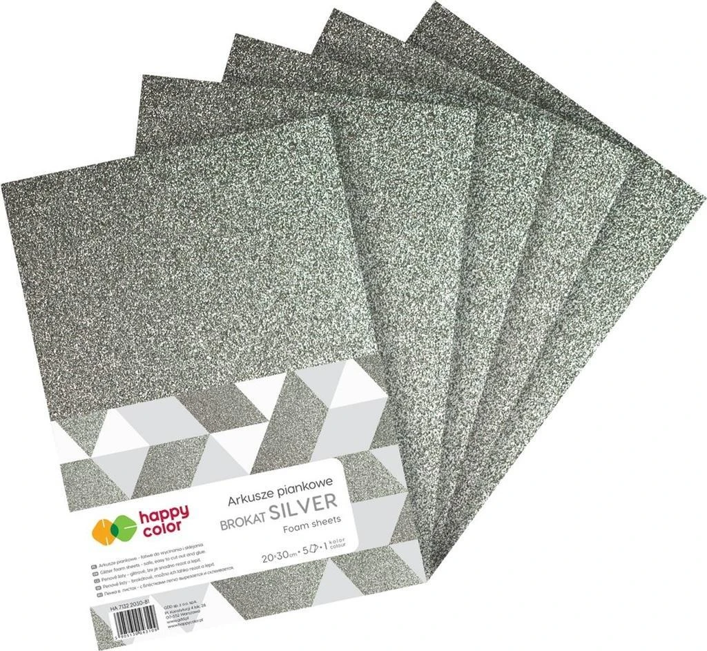 | NAZWA | ARKUSZE PIANKOWE A4 5SZT BROKAT SREBRO HAPPY COLOR |