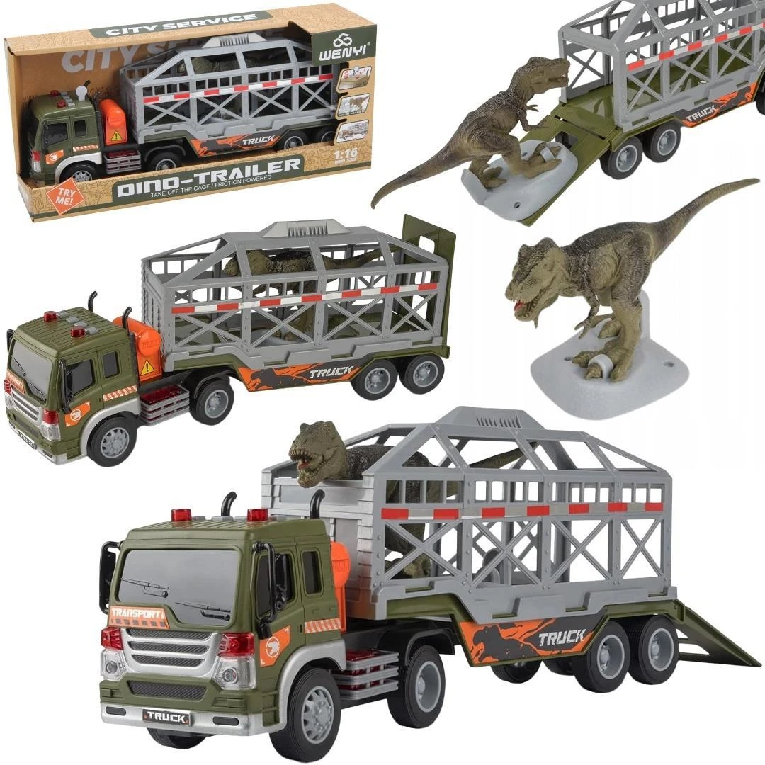 AUTO CIĘŻARÓWKA KLATKA Z DINOZAUREM ŚWIECĄCA