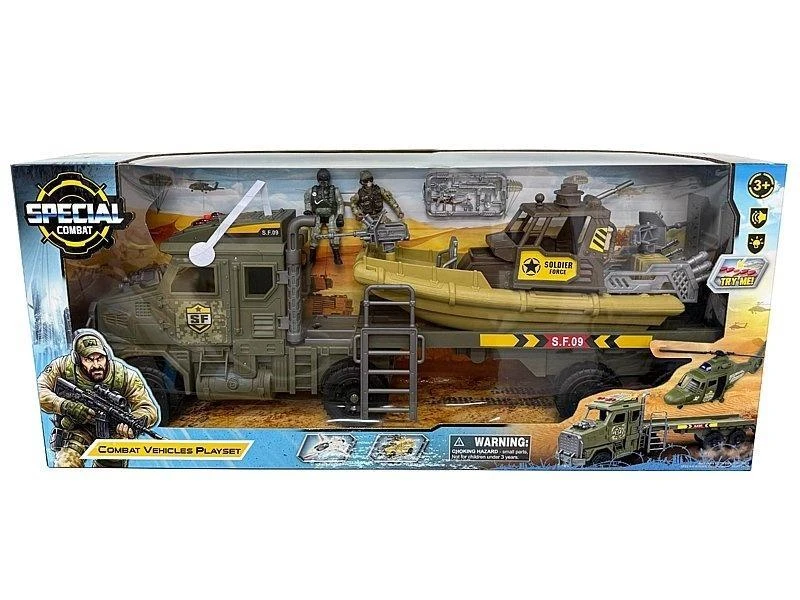 AUTO WOJSKOWE Z LAWETĄ I ŁODZIĄ 64,5X28X12,5CM