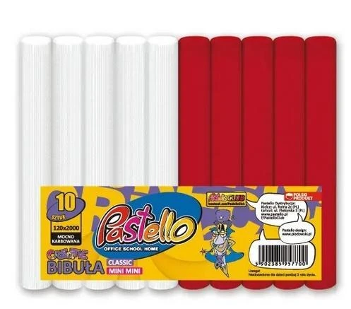 Bibuła marszczona w rolce, wysokość 12 cm, długość 200 cm. Gramatura 25 gram. Miks 2 kolorów: biały i czerwony. Idealna do różnych prac plastycznych w szkole lub przedszkolu. Stosowana do prac plastycznych, dekoracji i rękodzieła.