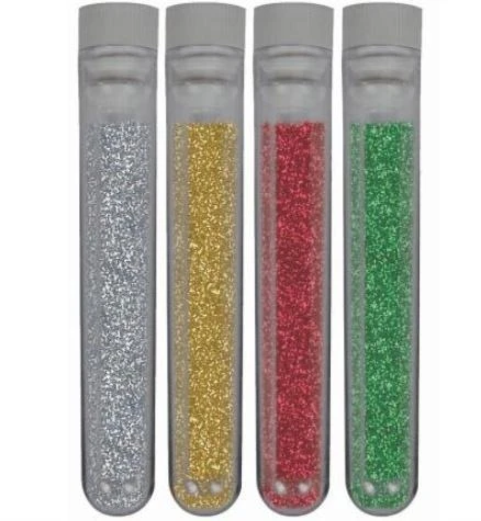 Drobny brokat w fiolkach. Każda fiolka zawiera 6,5 g. brokatu.
