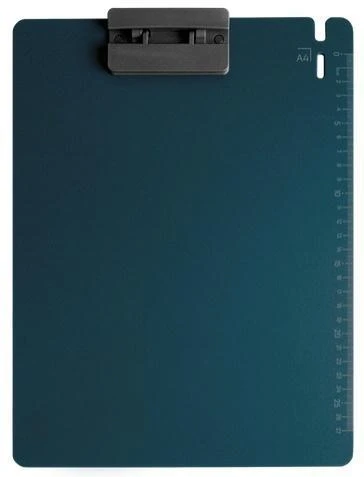 Deska z klipem, format A4. Wykonana z wytrzymałego i elastycznego tworzywa. Posiada podziałkę w skali CM na dłuższym boku. Kolor granatowy. Grubość tworzywa: 1,5mm.