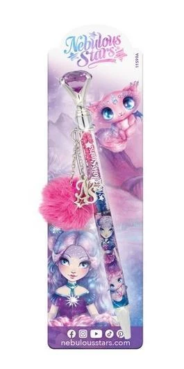 Przepiękny długopis ozdobiony okazałym kryształem i zawieszkami pomponem i literami. Jest praktyczny i jednocześnie wyróżnia się na tle innych gadżetów. Świetnie sprawdzi się w szkole i jako prezent. Modny design i kolorystyka nawiązują do magicznego świata Nebulous.