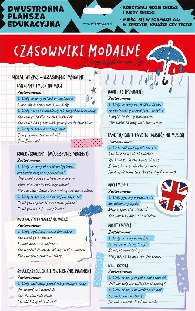 DWUSTRONNA PLANSZA/ŚCIĄGA A4 J. ANG. MODALNE