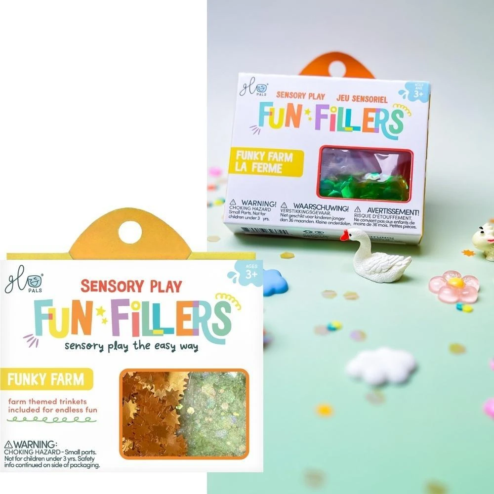 Fun Fillers to to idealny sposób, by w prosty sposób urozmaicić zabawę sensoryczną i nadać jej zupełnie nowy charakter. Każdy zestaw zawiera starannie dobrane, tematyczne elementy - brokaty, figurki, cekiny, barwniki i drobinki - które wzbogacają świecące słoiki Glo Pals i sprawiają, że eksplorowanie kolorów, faktur i ruchu staje się jeszcze bardziej ekscytujące.
