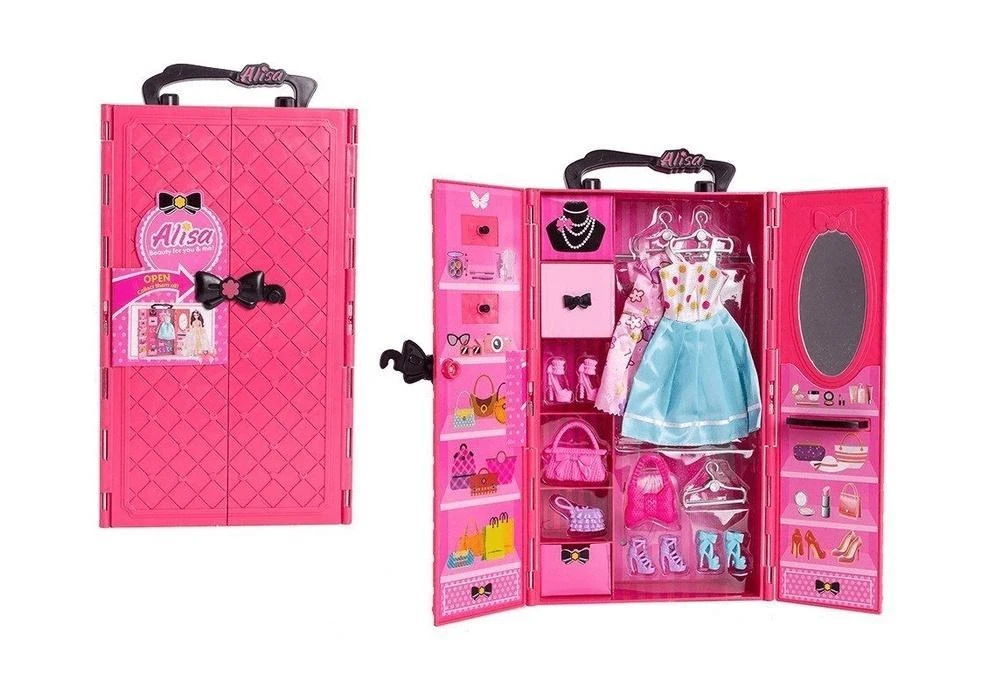 Szafa z ubrankami i akcesoriami, 3 sukienki, 3 pary butów, 2 torebki