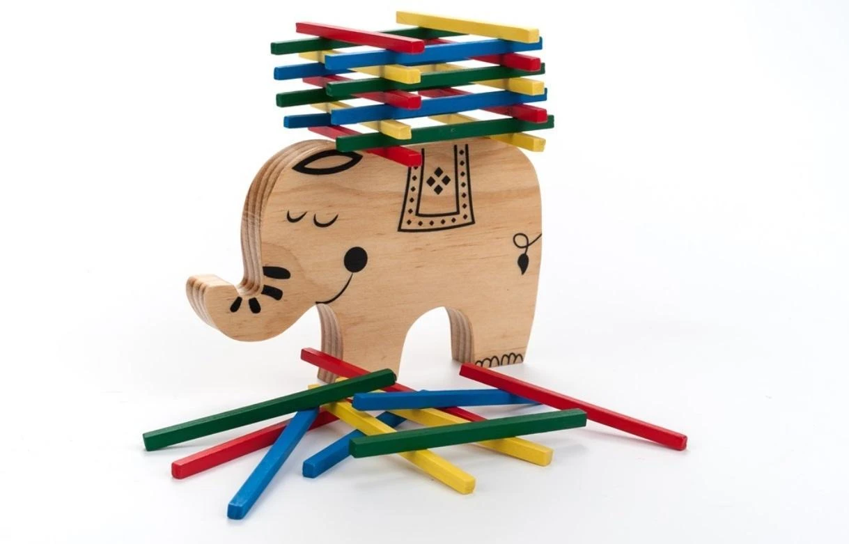 To nieco bardziej atrakcyjna odsłona popularnych bierek. Tutaj patyczki umieszcza się na drewnianym słoniu. Nasza pociecha może bawić się sama lub z innym dzieckiem bądź dorosłym sprawdzając kto będzie w stanie ułożyć więcej patyczków na grzbiecie słonia, tak by nie zburzyć całej konstrukcji.