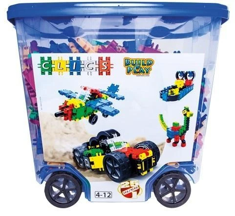 KLOCKI CLICS to zestawy kolorowych, edukacyjnych klocków, które razem tworzą setki różnych konstrukcji ograniczonych tylko wyobraźnią budowniczego.