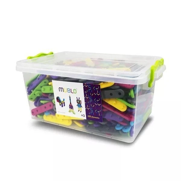 Wspólna zabawa rozwija umiejętności komunikacyjne, uczy pracy zespołowej i pomaga nawiązywać bliskie relacje. Do podwojonego zestawu Mublo wpadło aż 400 osobliwych paseczków, by dzieci mogły dzielić się radością konstruowania z rodzeństwem lub znajomymi. Budowanie z kolorowych klocków wyposażonych w zaczepy i otwory oraz zginających się w pół, to również świetna propozycja na zajęcia w przedszkolu czy szkole. Za pomocą Mublo można tworzyć literki, cyferki i figury geometryczne, dzięki czemu nauka sprawia najmłodszym wiele frajdy! Skąd czerpać pomysły na interesujące konstrukcje? Jesteśmy przekonani, że inwencja twórcza dzieci jest nieograniczona, ale dla wygody do opakowania dołączyliśmy ulotkę z naszymi propozycjami.