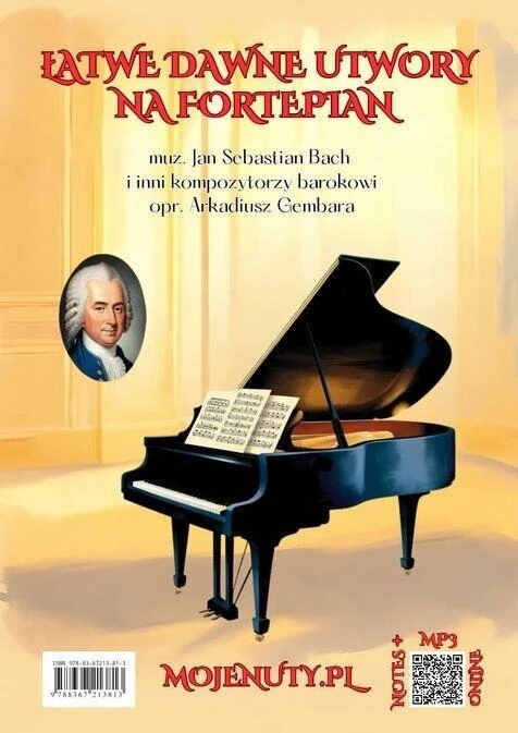 Łatwe dawne utwory na fortepian to zbiór starannie wybranych kompozycji, stworzonych z myślą o początkujących po średnio-zaawansowanych pianistach pragnących zgłębić tajniki muzyki barokowej. Publikacja ta stanowi wyjątkową okazję do zanurzenia się w bogactwo melodyczne i harmoniczne tej epoki. Dzięki przemyślanemu doborowi utworów, łączących aspekt edukacyjny z artystyczną wrażliwością, pianista ma możliwość nie tylko doskonalenia swoich umiejętności, ale także odkrywania piękna muzyki barokowej. Każdy utwór jest opracowany pod względem artykulacyjnym oraz aplikatury palcowej. Zawiera również kod QR, który po zeskanowaniu przekierowuje do portalu YouTube, gdzie można odsłuchać wykonanie danego dzieła. Nagrań dokonał autor publikacji, Arkadiusz Gembara. Warto zaznaczyć, że ostateczna interpretacja utworów pozostaje w gestii wykonawcy oraz nauczyciela, który może mieć własną wizję interpretacyjną. Niestety, nie posiadamy nagrań interpretacji kompozytorów tej epoki, a wszystkie dostępne wersje są wynikiem interpretacji zaproponowanych przez wydawnictwa muzyczne oraz ekspertów w dziedzinie muzyki barokowej. Kompozytorzy epoki baroku, w tym Jan Sebastian Bach, rzadko wskazywali na konkretne oznaczenia dotyczące artykulacji, dynamiki i tempa. Te pojęcia, jak wcześniej wspomniałem, zostały przypisane przez wydawnictwa nutowe oraz autorów opracowań na podstawie ich wiedzy oraz doświadczenia. Zapraszamy do muzycznej podróży po świecie Bacha oraz pokrewnych mu kompozytorów, gdzie prostota spotyka się z głębią, tworząc niezapomniane doświadczenie dla każdego miłośnika muzyki.