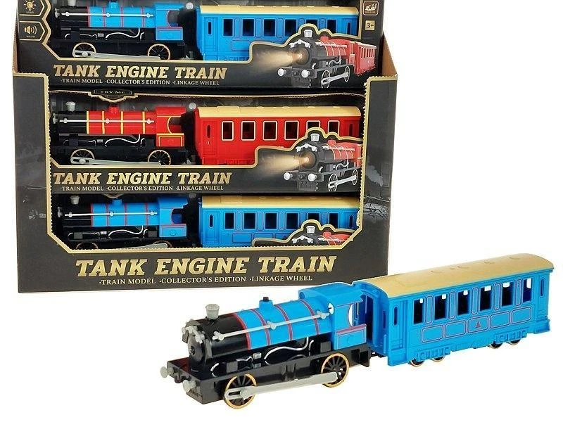 LOKOMOTYWA Z WAGONEM ZE ŚWIATŁEM I DŹWIĘKIEM 6 SZT