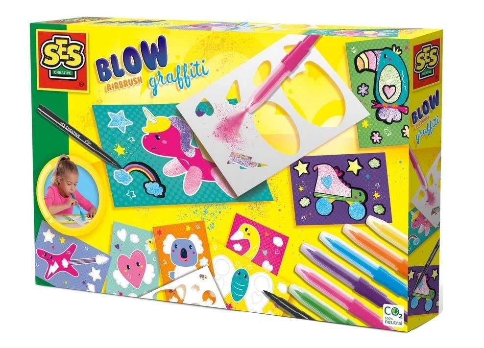 Rozpuść włosy i użyj sześciu markerów aerografu, aby namalować wesołe graffiti na wstępnie wydrukowanych kartach. Dołączone szablony pomogą Ci w starannym pokolorowaniu figur. Następnie możesz obrysować swoje kreacje czarnym markerem. Wow, stały się prawdziwymi dziełami sztuki graffiti!