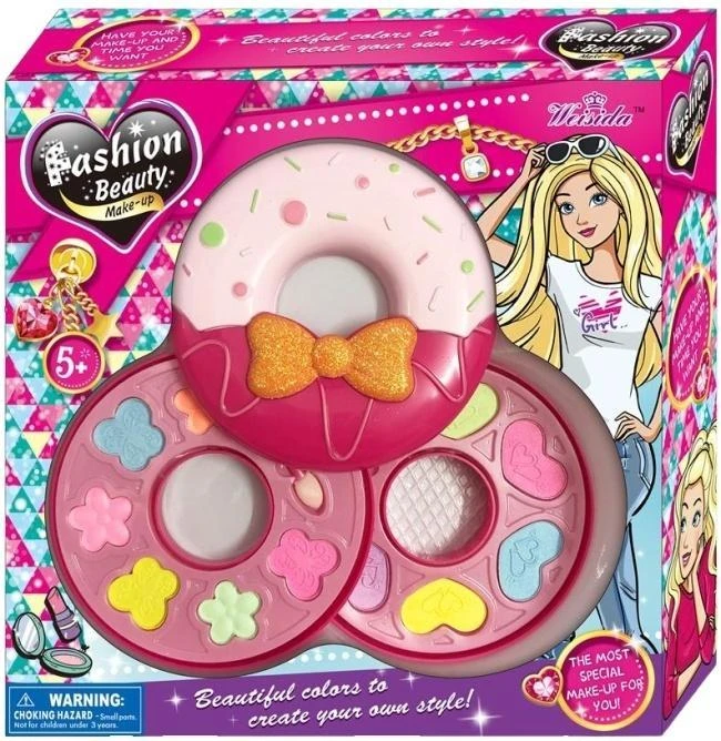 Odkryj magiczny świat kolorów z wyjątkowym zestawem do makijażu Fashion Beauty, który zachwyca nie tylko swoją zawartością, ale i niepowtarzalnym designem. Paleta została zaprojektowana na wzór smakowitego donuta z lukrem i posypką, co natychmiast przyciąga wzrok i rozbudza wyobraźnię. Po rozłożeniu pudełeczka oczom ukazuje się wielopoziomowe centrum urody wypełnione delikatnymi cieniami do powiek i błyszczykami. Każdy element zestawu ma unikalny kształt - od uroczych kwiatuszków po słodkie serca, co sprawia, że codzienna zabawa w malowanie staje się fascynującą przygodą w świecie mody.
