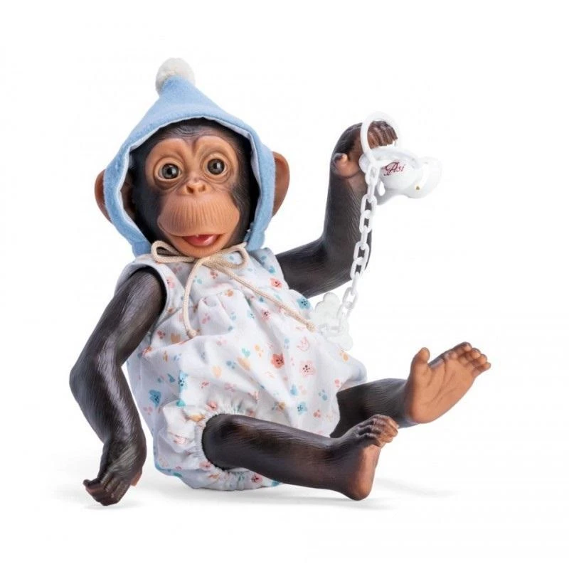 Przyciągająca wzrok realistycznym wyglądem, dopracowana w najdrobniejszych detalach małpka renomowanej hiszpańskiej marki Asi wykonana została z miękkiego, przyjemnego w dotyku winylu. Zwracają uwagę brązowe oczy o głębokim spojrzeniu. Ruchome kończyny można ułożyć dowolnie. Głowę również można obracać, dzięki czemu szympans może przyjmować różne pozycje. Sprawdzi się jako towarzysz przygód i zachęci do kreatywnej zabawy w troskliwą opiekunkę i wielbicielkę zwierząt.
