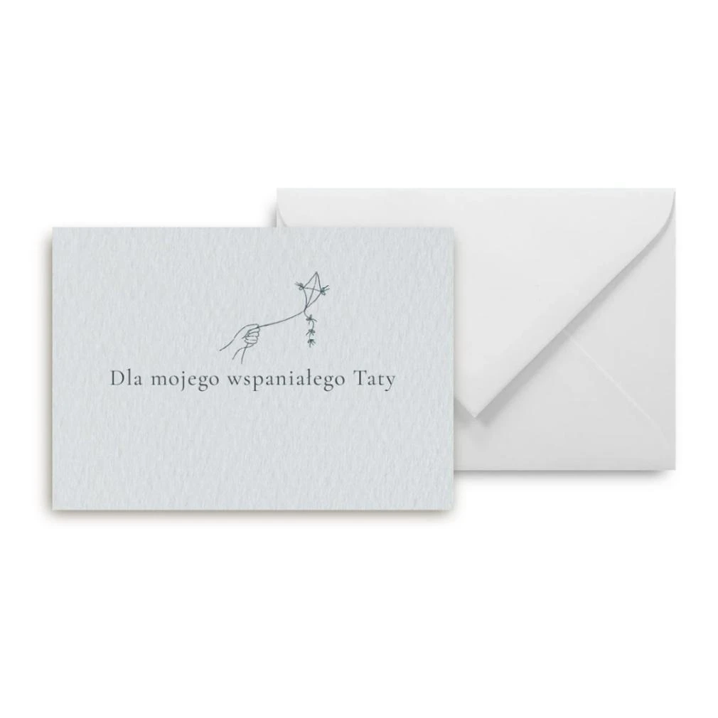 Kartka w komplecie z białą kopertą, co czyni ją gotowym do wręczenia prezentem