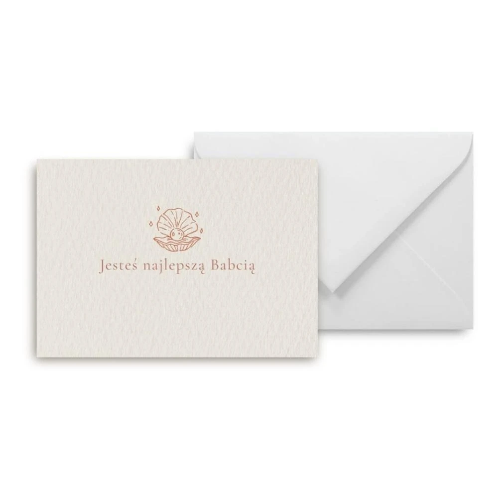 Kartka w komplecie z białą kopertą, co czyni ją gotowym do wręczenia prezentem