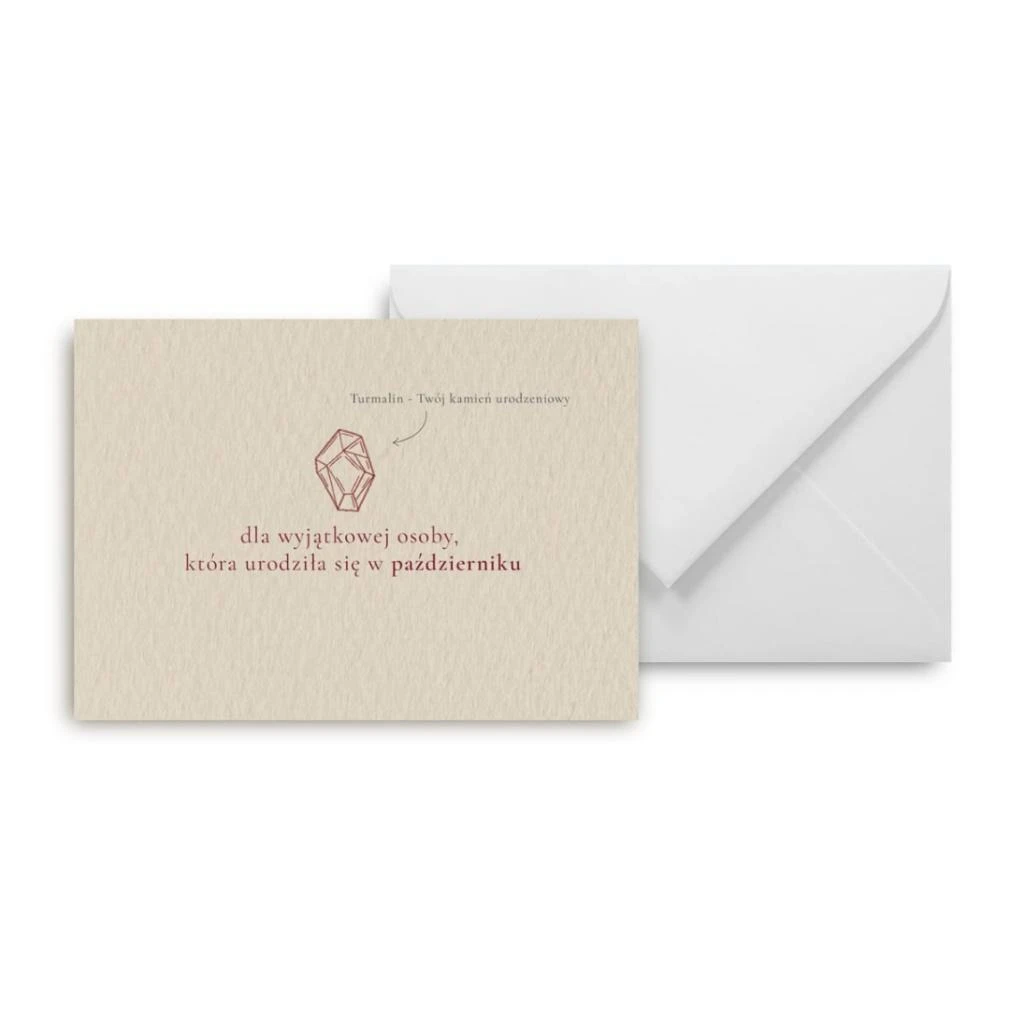 Kartka urodzinowa ozdobiona opalem kamieniem października. Jego kolorowe refleksy symbolizują