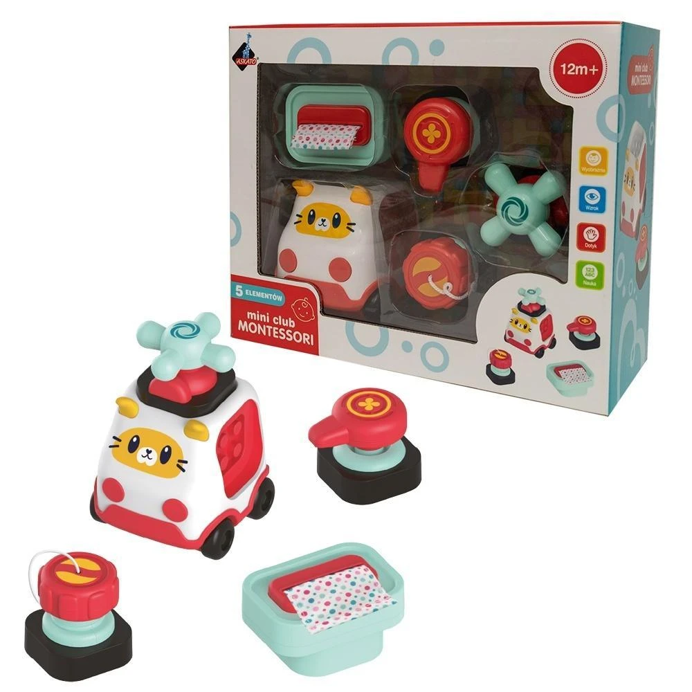 Elementy zestawu Mini Klub Montessori pozwalają dziecku uczyć się przez dotyk, ruch i obserwację, nie przeładowując zarazem jego percepcji zbędnymi bodźcami. Na tak wczesnym etapie życia, niezmiernie ważne jest wspieranie malucha w jego rozwoju ruchowym i sensorycznym. Wiek 12m+ wymiary opakowania: 27.5 x 10 x 22 cm