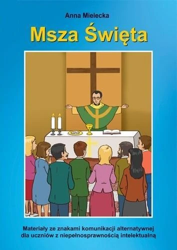 Msza Święta to kolejna po Spotykam Jezusa publikacja przeznaczona dla uczniów z niepełnosprawnością intelektualną w stopniu umiarkowanym i znacznym oraz osób posługujących się alternatywnymi i wspomagającymi metodami komunikacji. Proste ilustracje i opisy dotyczące poszczególnych elementów Mszy Świętej pozwalają uczniom poznać przebieg Eucharystii. Znaki komunikacji alternatywnej PCS pomagają uporządkować pojęcia bazowe związane z uczestniczeniem w liturgii. Książka wprowadza do świadomego udziału we Mszy Świętej. Może być wykorzystana na lekcjach, jak również w kościele, gdzie pomoże uczniowi śledzić przebieg liturgii. Zawarte w niej treści z czasem powinny być rozszerzane i pogłębiane w miarę nabywania przez uczniów wiedzy i umiejętności.