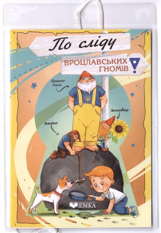 Mapa wrocławskich atrakcji w foliowym etui z zawieszką w języku ukraińskim.