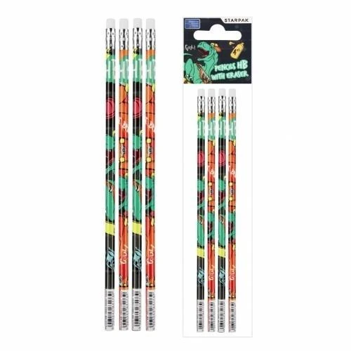OŁÓWEK Z GUMKĄ HB SKATE DINO 4SZT, STARPAK