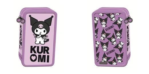 Piórnik szkolny potrójny z wyposażeniem Kuromi violet