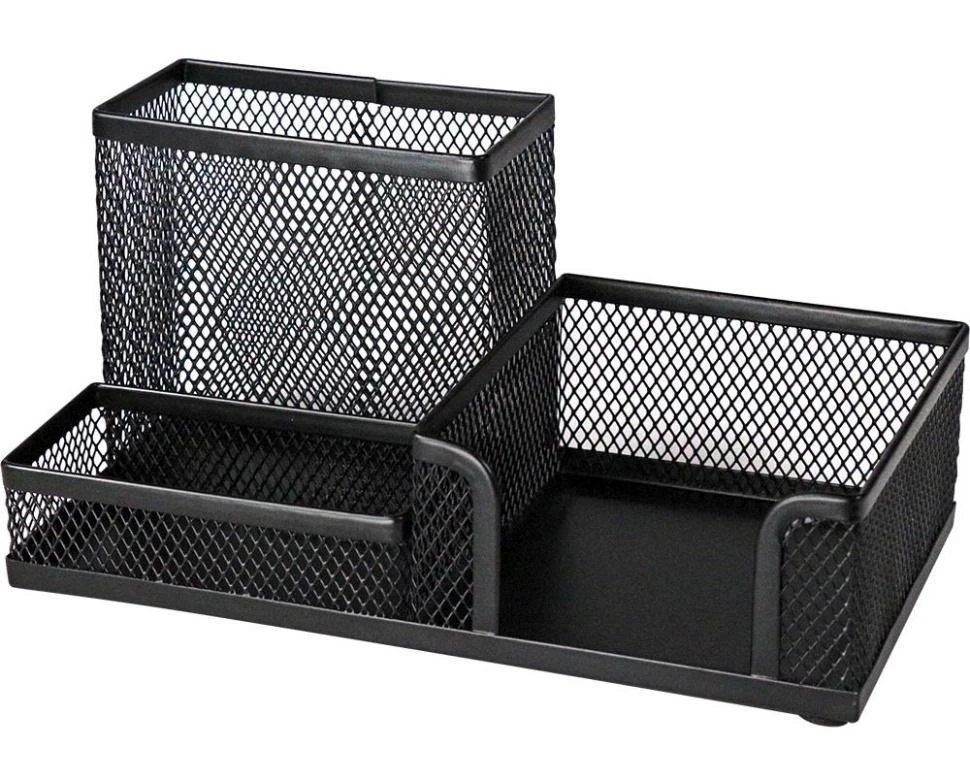 Przybornik na biurko - wykonany z metalowej siatki powlekanej lakierem - kolor czarny - szer. 20 cm x wys. 9,7 cm x gł. 10 cm