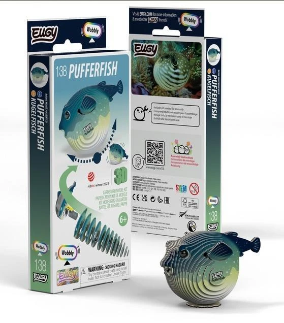 Rozdymka Eugy wygląda jak żywa nadmuchana rybaka, ma pyszczek jak dziób ze zrośniętych ze sobą zębów, który służy jej do kruszenia skorup mięczaków. Figurka jest okrągła jak kuleczka, dlatego poruszona chwieje się jak wańka wstańka.