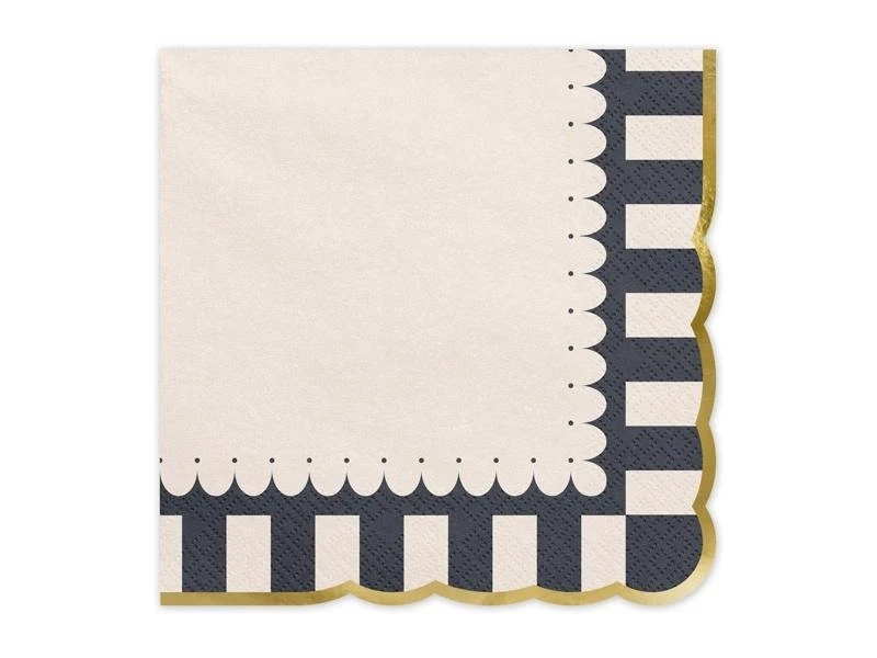 Papierowe serwetki ze złotym, błyszczącym brzegiem. Wymiary po rozłożeniu ok. 33 x 33 cm, wymiary po złożeniu ok. 16.5 x 16.5 cm.(1 op. / 12 szt.)