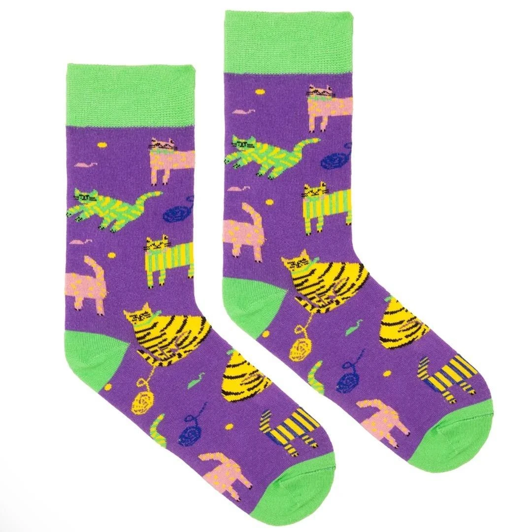 SKARPETKI BAWEŁNA ORGANICZNA KOTY FIOLETOWE 36-41