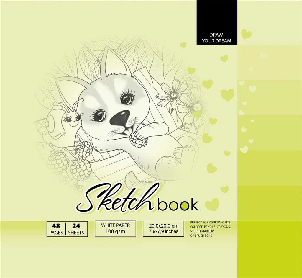 Szkicownik 200x200 mm, 48 stron, gramatura papieru 100g/m2. Ołówki, kredki, markery, mazaki, pędzle - tych rzeczy możesz użyć w tym szkicowniku! Namaluj swoje marzenia!