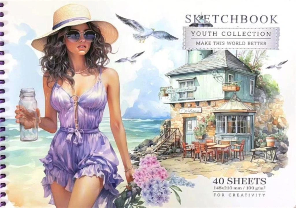 Szkicownik N9655 A5 koło 40 kartek gładki Kawiarnia nad morzem