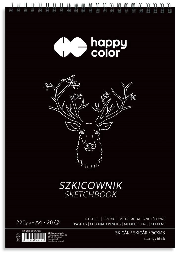 SZKICOWNIK NA SPIRALI A4/20K CZARNY HAPPY COLOR