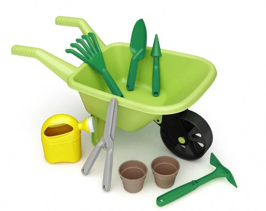 Zestaw zawiera wszystkie niezbędne akcesoria do prac ogrodowych czy zabawy w piaskownicy i składa się z: