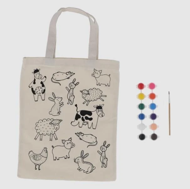 TORBA PŁÓCIENNA DO KOLOROWANIA Z FARBKAMI - FARMA
