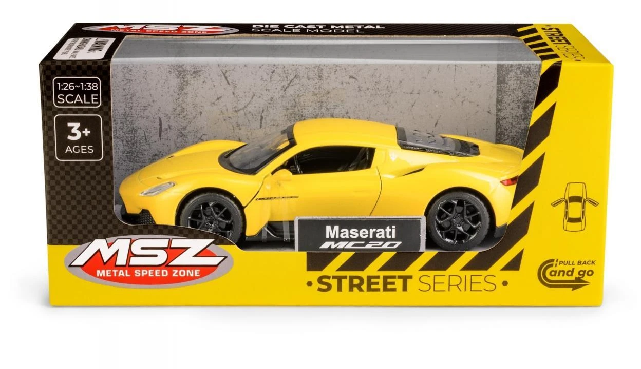 Model metalowy DIE-CAST wykonany z wysokiej jakości materiałów, z dbałością o każdy detal. Posiada napęd typu pull-back oraz otwierane drzwi, które umożliwiają zajrzenie do starannie odwzorowanego wnętrza pojazdu. Skala pojazdu w zależności od modelu: 1:26 - 1:38.nnMetalowa konstrukcja została uzupełniona elementami plastikowymi, co zapewnia trwałość oraz realistyczny wygląd modelu. To miniaturowe odwzorowanie prawdziwego auta, stworzone na oficjalnej licencji producenta.nnModel doskonale sprawdzi się zarówno jako element kolekcjonerski, jak i podczas kreatywnej zabawy dla dzieci.nnProdukt spełnia europejskie normy bezpieczeństwa zabawek.nnWiek: 3+