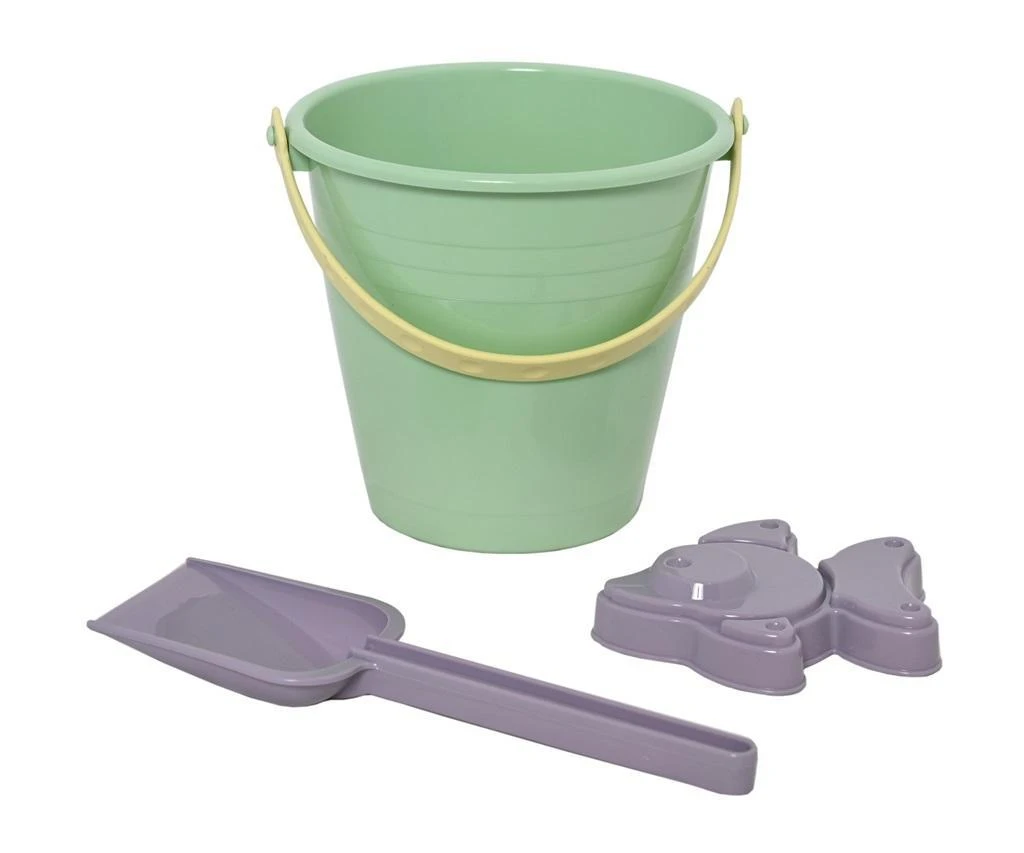 Zrównoważony wybór! Wysokiej jakości zestaw Plasto z wiadrem, łopatką i foremką do piasku. 3 części. Pojemność wiadra 1,2 L. Długość łopaty 20 cm. Bioplastik. Plastik zastosowany w tej zabawce produkowany jest z trzciny cukrowej, która jest w 100% odnawialna.