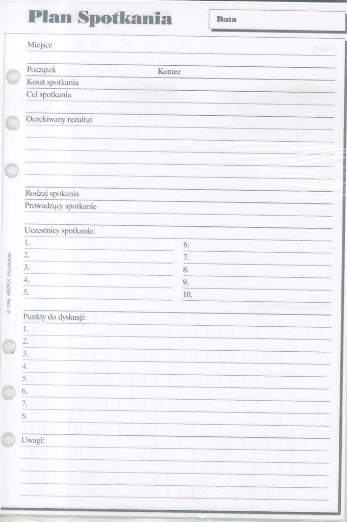 WKŁAD DO ORGANIZERA A5 PLAN SPOTKAŃ ANTRA, ANTRA