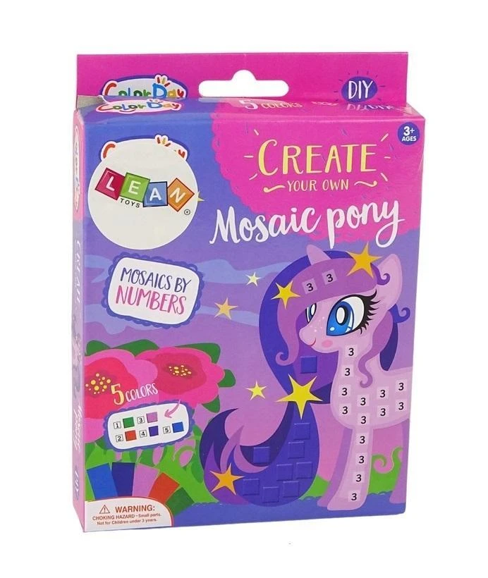 Mozaika z numerkami, na które dziecko przykleja kolorowe naklejki w odpowiedni kwadracik.