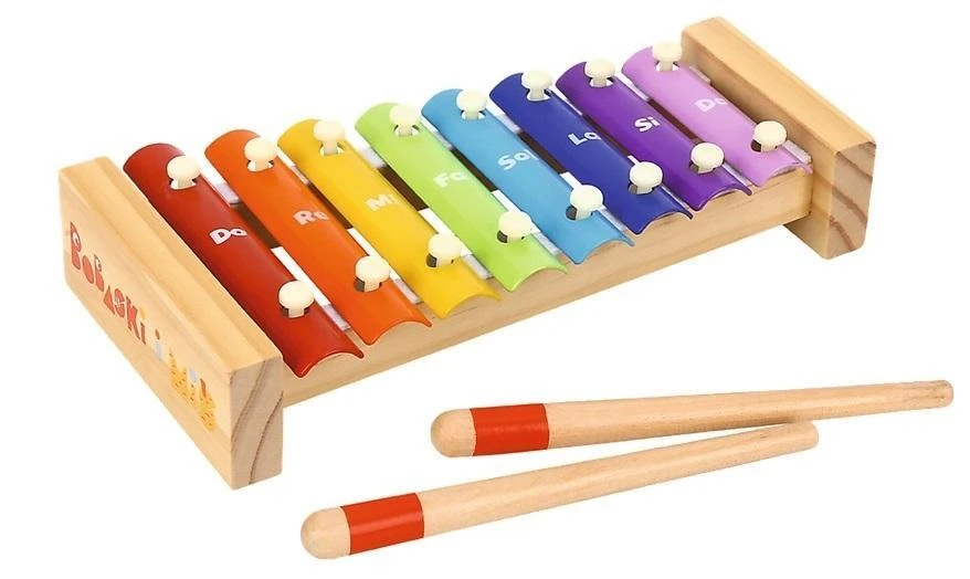 Drewniany instrument z metalowymi blaszkami w pastelowych kolorach.Na blaszkach nadrukowana gama ułatwia naukę gry.Zabawka rozwija koordynację wzrokowo-ruchową Wzmacnia naturalne poczucie rytmu.Rozwija zdolności manualne i słuchowe.Ćwiczy koncentrację. Połączenie zabawy z nauką. Wszystkie materiały wykorzystane do stworzenia zabawki posiadają atesty, a także zostały pomalowane nietoksycznymi farbami.