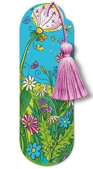 Złocona zakładka wykonana z grubego kartonu ozdobiona kolorowym chwostem.