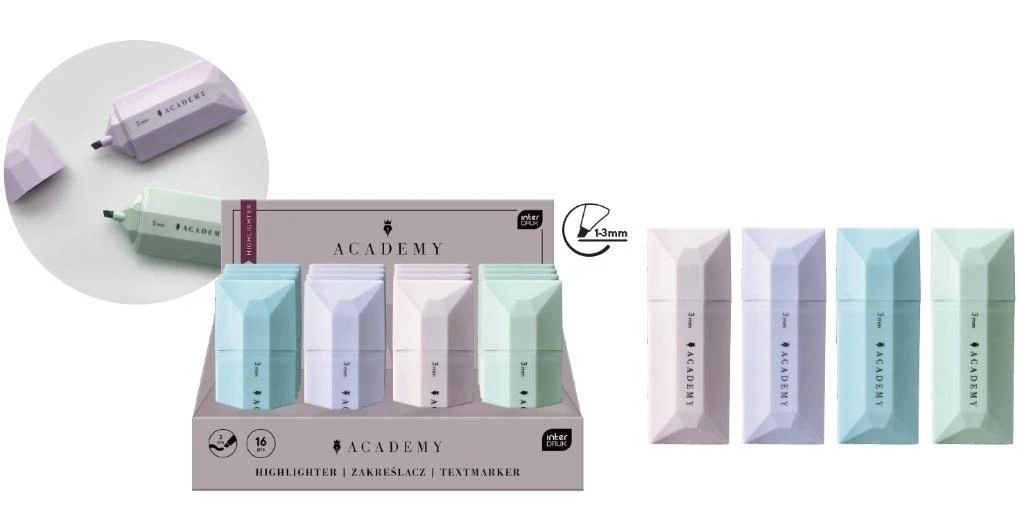 ZAKREŚLACZ PŁASKI ACADEMY (16SZT), INTERDRUK