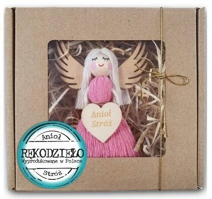 Anioł Stróż - Rękodzieło wyprodukowane w Polsce. Figurka Anioła o wymiarach 10x7cm, ułożona na wełnie drzewnej, całość zapakowana w ekologiczne pudełeczko z okienkiem opasane złotym sznureczkiem.