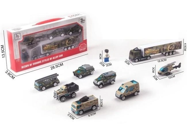 Przedstawiamy imponujący zestaw metalowych pojazdów militarnych w skali 1:64, który zachwyci każdego miłośnika wojskowych akcji. Każdy model charakteryzuje się precyzyjnym wykonaniem i dbałością o szczegóły, co sprawia, że są one wiernym odwzorowaniem prawdziwych maszyn. Solidna konstrukcja die-cast zapewnia trwałość i odporność na intensywną zabawę. W skład zestawu wchodzi różnorodność pojazdów, od ciężarówek transportowych po specjalistyczne wozy bojowe, co pozwala na odtwarzanie wielu scenariuszy. Dodatkowo, dołączona figurka żołnierza inspiruje do tworzenia własnych, pasjonujących historii i misji. Całość zapakowana jest w estetyczne pudełko, idealne na prezent. To doskonała zabawka, która rozwija wyobraźnię i zdolności manualne, jednocześnie dostarczając mnóstwa radości.