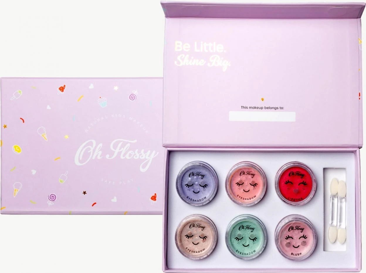 Zestaw Sweet Treat do makijażu marki Oh Flossy to prawdziwy hit. Przepięknie zaprojektowany, idealnie nadaje się dla dzieci, które uwielbiają kreatywną zabawę, a jednocześnie jest bezpieczny dla ich delikatnej skóry, chroniąc ją przed działaniem kosmetyków dla dorosłych. Zamknięty w eleganckim pudełku z magnetycznym zamknięciem, stanowi wyjątkowy prezent na specjalne okazje.