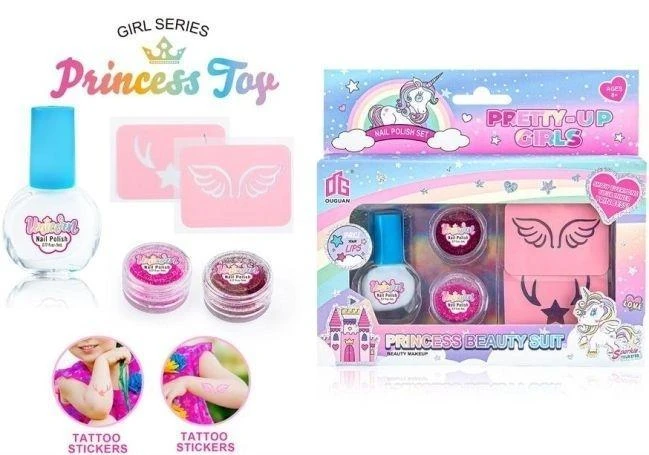 Każda zabawa w salon piękności nabierze teraz zupełnie nowego, magicznego wymiaru. Zestaw Princess Beauty Suit z serii Pretty-Up Girls to starannie skomponowana kolekcja akcesoriów, która zachwyca pastelową kolorystyką i motywami prosto z baśniowego świata jednorożców. Sercem zestawu jest delikatny lakier do paznokci o subtelnym wykończeniu, uzupełniony o dwa pojemniczki z mieniącym się pyłkiem. Dzięki nim tworzenie unikalnych wzorów staje się fascynującą przygodą, która ćwiczy precyzję i pozwala dziecku wyrazić swój własny styl.