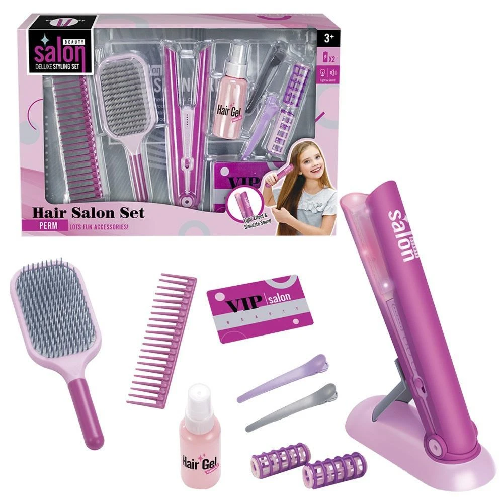 Zestaw składa się z prostownicy na baterie, szczotki, grzebienia, 2 wałków, 2 spinek, plastikowej buteleczki oraz karty VIP dla najlepszych klientek. Prostownica posiada blokadę, wymaga użycia baterii - 2xAAA (niedołączone).