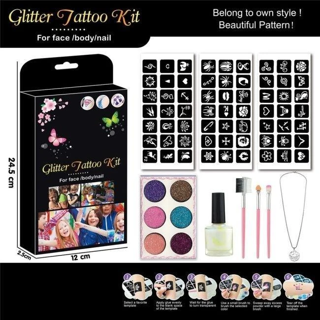 Odkryj magiczny świat kreatywności z profesjonalnym zestawem do tatuaży brokatowych, który zamieni każde dziecięce spotkanie w niezapomniany festiwal barw. Ten kompleksowy przybornik artystyczny został zaprojektowany z myślą o małych stylistach pragnących eksperymentować z wizerunkiem w bezpieczny i radosny sposób. Dzięki szerokiej gamie szablonów - od delikatnych motywów roślinnych po dynamiczne symbole - każde dziecko znajdzie wzór idealnie oddający jego osobowość.