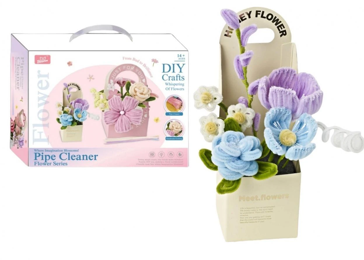 W zestawie: druciki kreatywne, ozdobne pudełko, elementy do ręcznego tworzenia kwiatów, łodyg i liści; wym. opak.: 34 x 35,3 x 10 cm; 14+